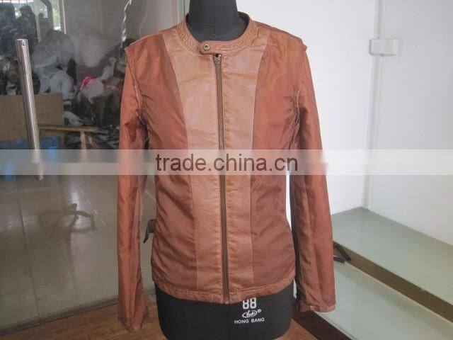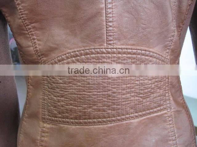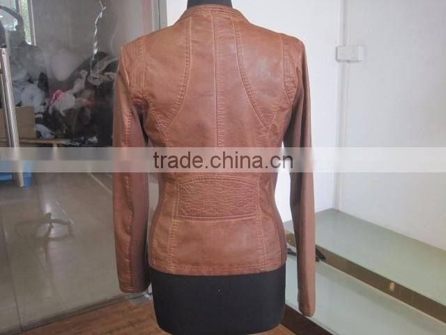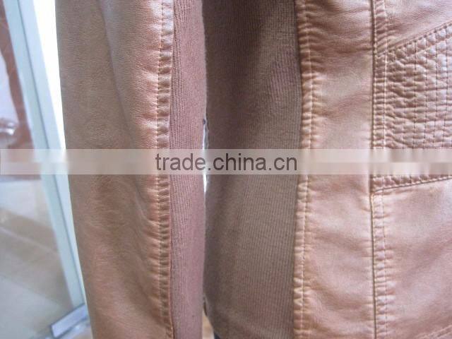 Faux Leather Jacket Women Cothing New 2015 Montage Patchwork Zipper Pockets PU Leather Jacket Fashion Autumn Winter Leather Coat