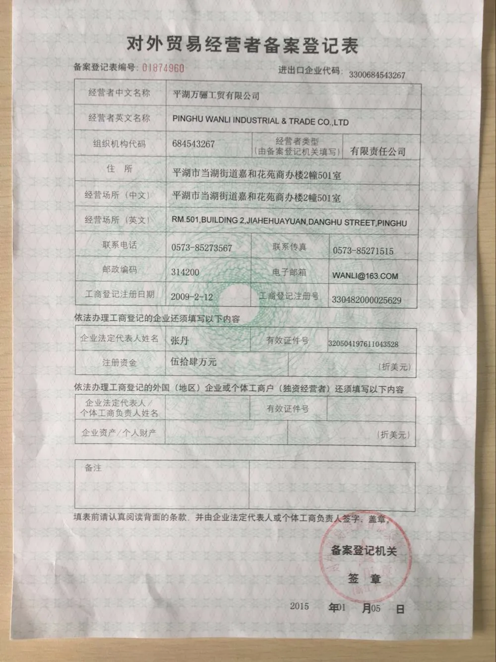 - Pinghu Wanli Industrial & Trade Co., Ltd.