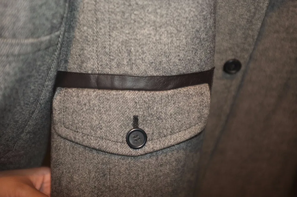 Men Coat With 2 Zipper Pockets 100% Wool Suit Jacket
