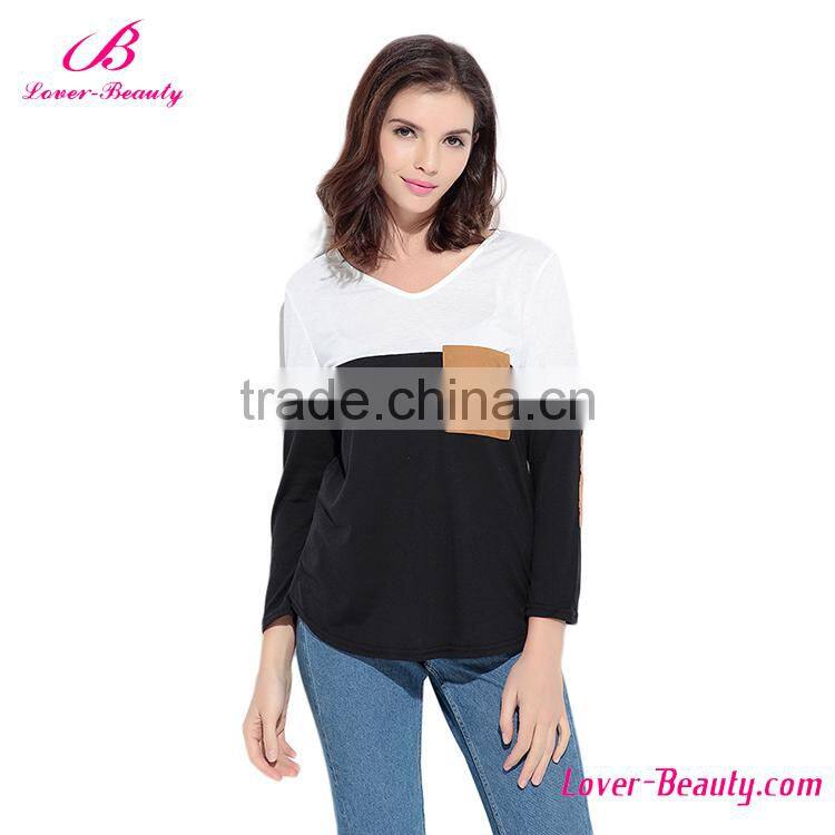 | Production Name | Top sale pocket long sleeves black and white shirt women pullover |