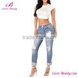 Fast Shipping Worn Out Regular Blue Tight Work Woman Sexy Trousers
