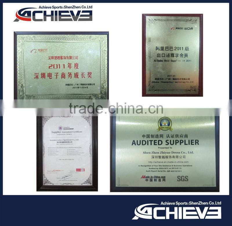 We stick to our concept of "always achieving higher goals". We are based in Shenzhen, China and we were established with our objective of "providing a range of sublimated sports apparels with international quality to athletes at various levels in different sports". Achieve Sportswear is proud to have young and energetic staff members that excel in both sportswear business and sports. Their involvement in sports enables our products to stand at the forefront of the market. Our forte is "a full coverage of sublimation printed sportswear and accessories". Our production lines cover most of sportswear including but not limited to: basketball uniforms, soccer jerseys, cycling jerseys, cycling bib shorts, BMX shirts, cycling skin suit, netball bodysuit, rugby shirts, American football jerseys, cheerleading uniforms, baseball uniforms, tracksuits, etc. We are your best online source of custom-made and wholesale sportswear! Our sales team is committed to providing high quality products with low price, outstanding service and on-time delivery! Contact us and your satisfaction will be guaranteed!