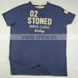 Mens Cranked Printing Knitted Cotton T-Shirt With Acid Washed Navy Blue