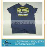 Hot Selling Mens Solid Col With Cracked Printing & Applique Embroidery Tee Shirt With Acid Wash