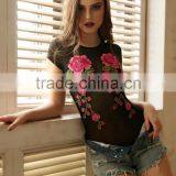Conjoined T-shirt Mesh Cloth Teddy Lingerie Sexy Bra Panty Set Images Embroidery Rose Sexy Girls T-shirt
