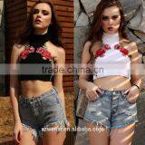 Sexy Tank Top Women Tops Crop Top Embroidery Rose