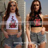 Sexy Tank Top Women Tops Crop Top Embroidery Rose T-shirt