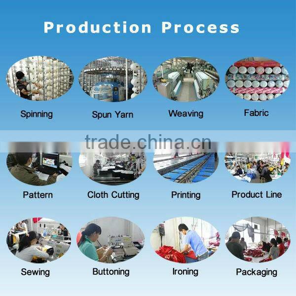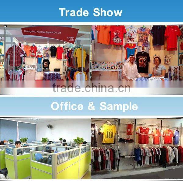 Guangzhou Kangkai Apparel Factory is located guangzhou, China. which is specialized in manufacturing all kinds of t shirt ,polo ,shirt, jacket, hoodie, pants & shorts ,workwear, uniform, sports wear etc. our factory Covers an area of 2,000 square meters with over 150 employees and strict quality controlled system. Welcome you to visit our factory any time.