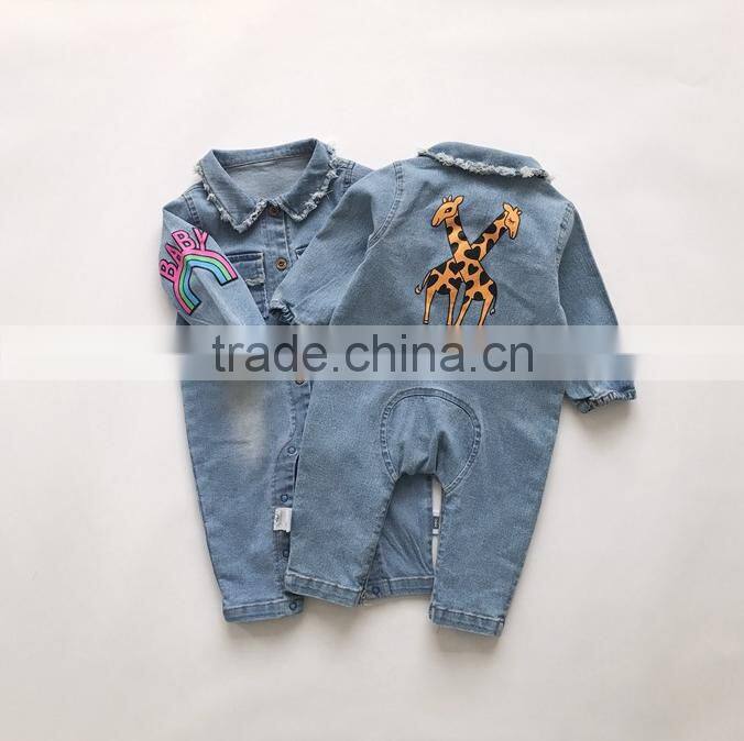Korean Style Baby Clothes Romper Stone Washed Denim Romper With Two Pocket