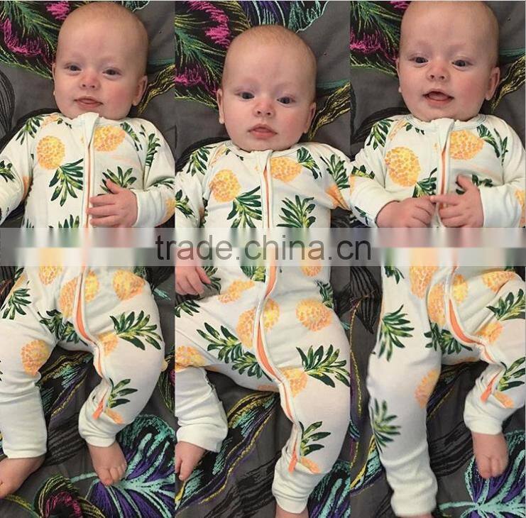Hot Sale 100% Cotton Pineapple Pattern Onesie Kids Newborn Pajama Romper
