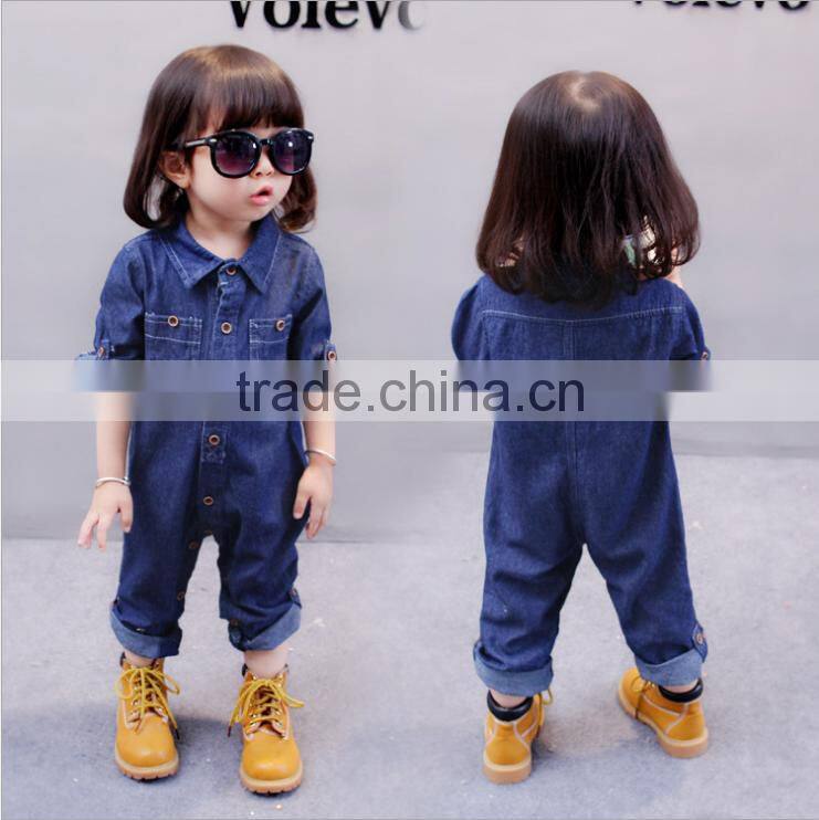 Korean Style Baby Clothes Romper Stone Washed Denim Romper With Two Pocket