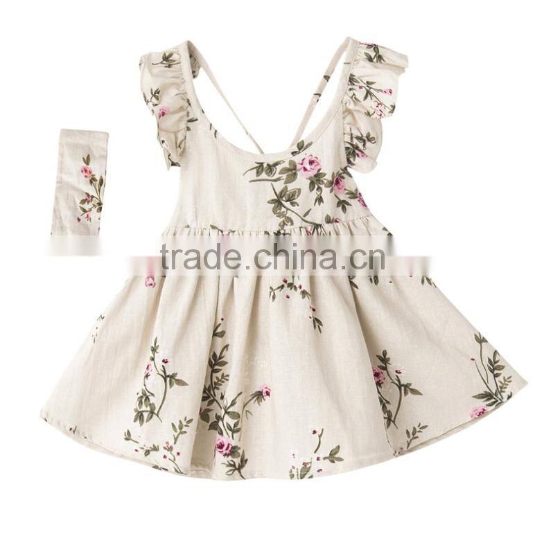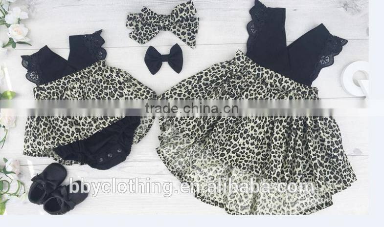 Wholesale Lace Fultter Sleeve Baby Girl Pom Pom Romper Leopard Print Childrens Dresses