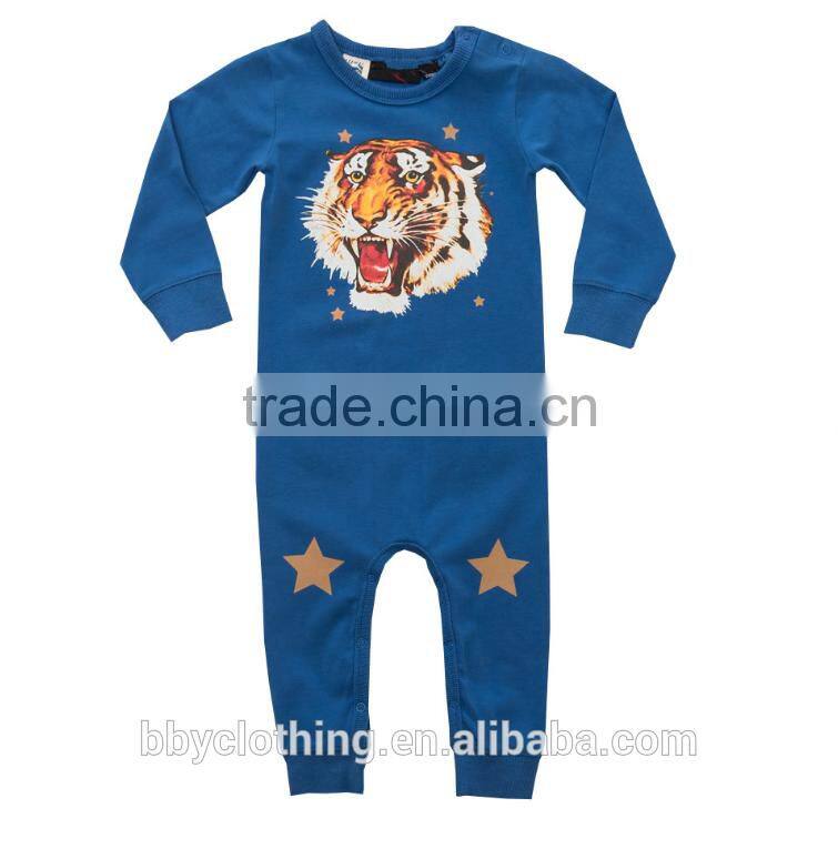 Wholesale China Clothes Prompt Delivery Blue Colour Cotton Animal Onesie Tiger's Head Print Romper