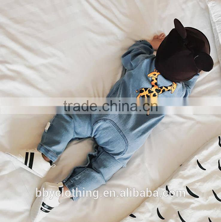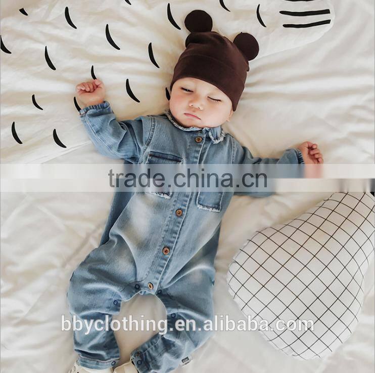 Korean Style Baby Clothes Romper Stone Washed Denim Romper With Two Pocket