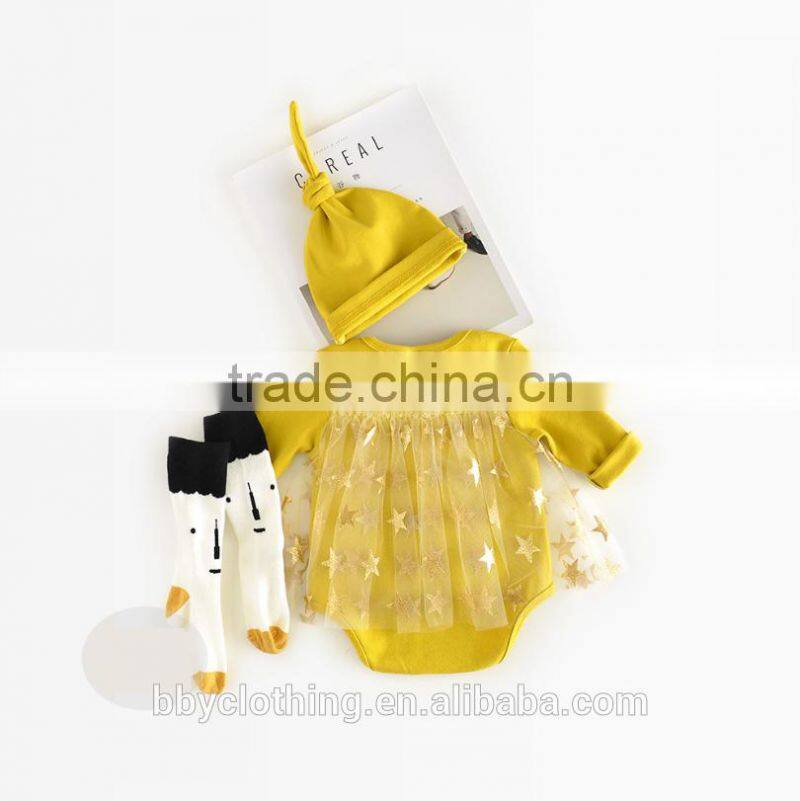 Fashion designs of newborn baby clothes set baby romper clothing with baby hat