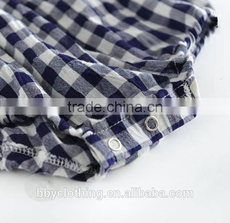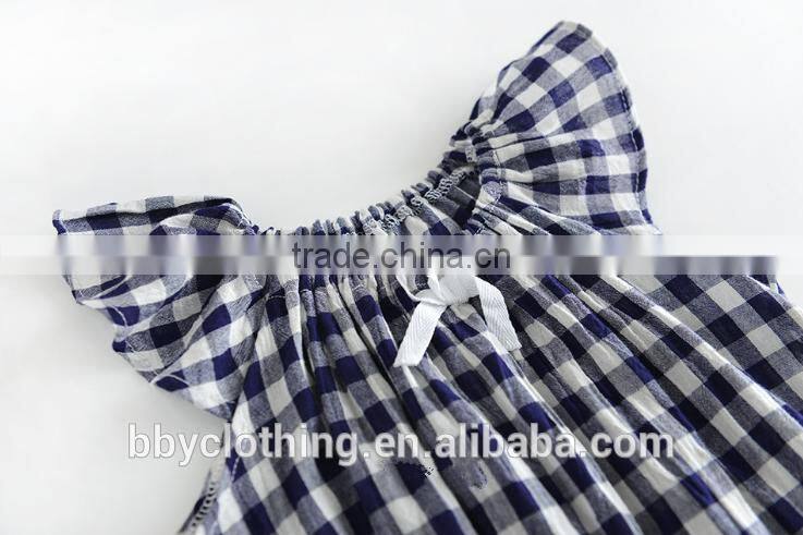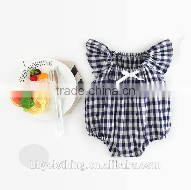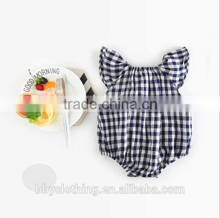 2017 Beautifuly pure cotton toddler girls small grid romper with bubble sleeve