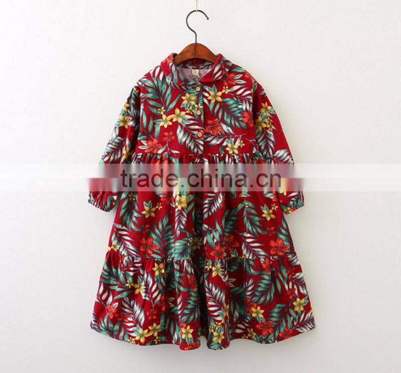 2017 Autumn Winter Kids Dresses Design Girl Printing Flower Birthday Party Dress