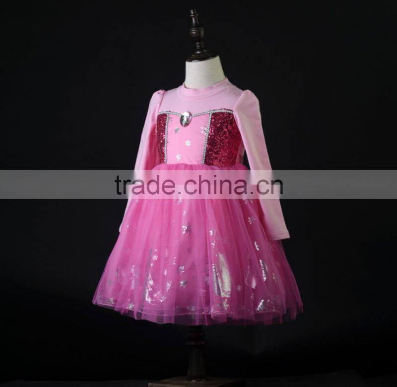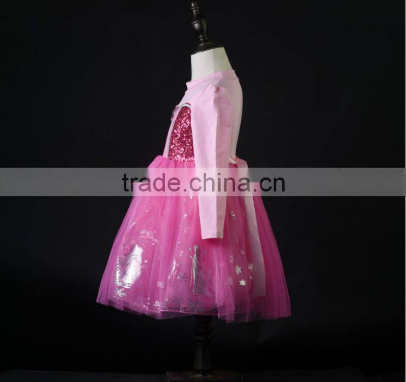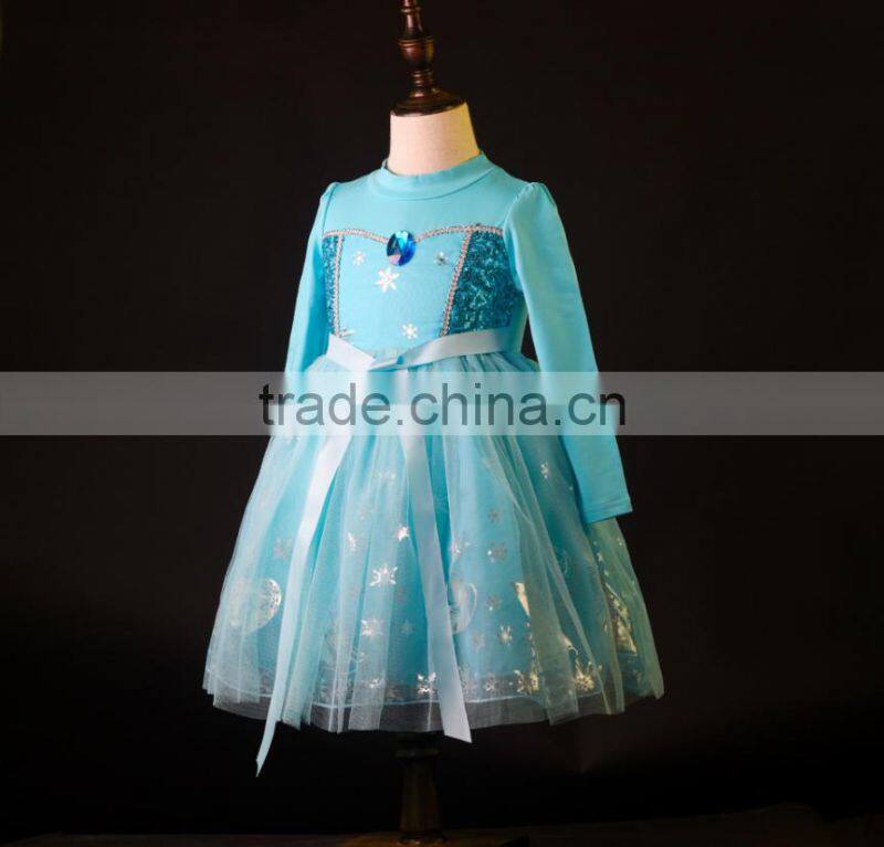 New Girl Dresses Costume Lace Long Sleeves Kid Sequinned Dresses Children Cosplay