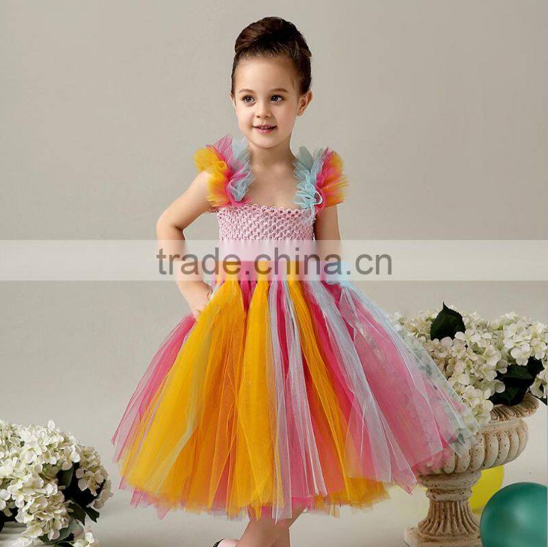- Kids Wear Dress Summer Girl Pretty Princess Dress Children Sling Sleeveless Rainbow Mesh Tutu Dress for Toddler