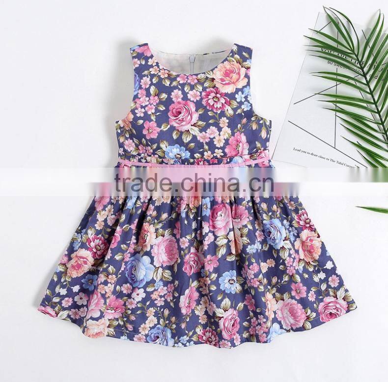 Summer Autumn Kids Dresses Design Lovely Sleeveless Baby Girl Floral Dress