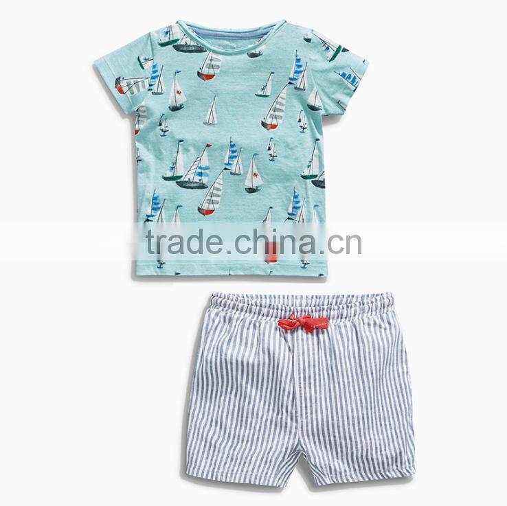 2017 Wholesale Baby Boy Clothes 100% Cotton Kids Short Sleeve Clothing Set