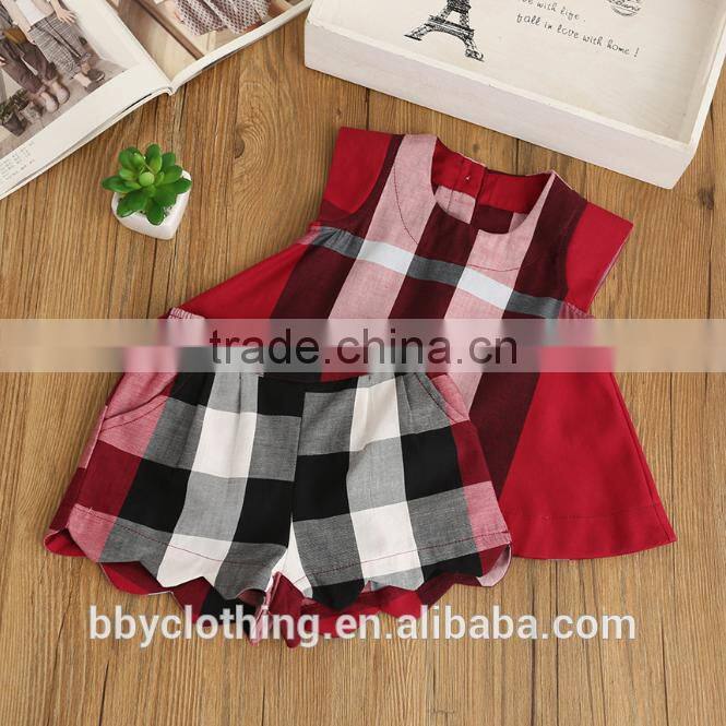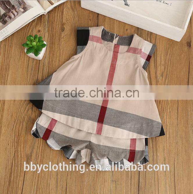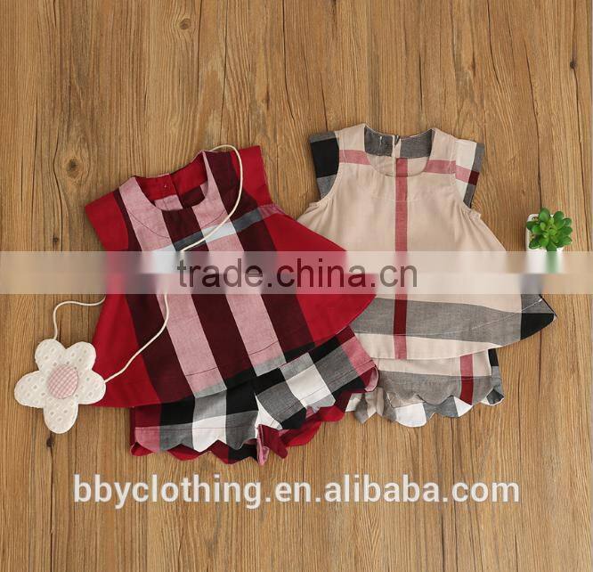 2017 Western Style Girls Classical Grid Clothing Set Kids Pure Cotton Short Suit
