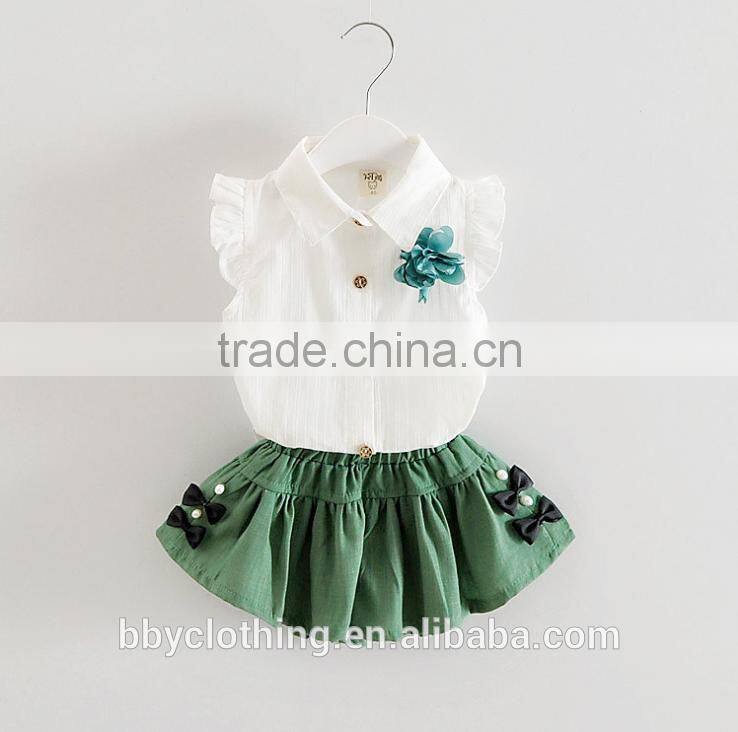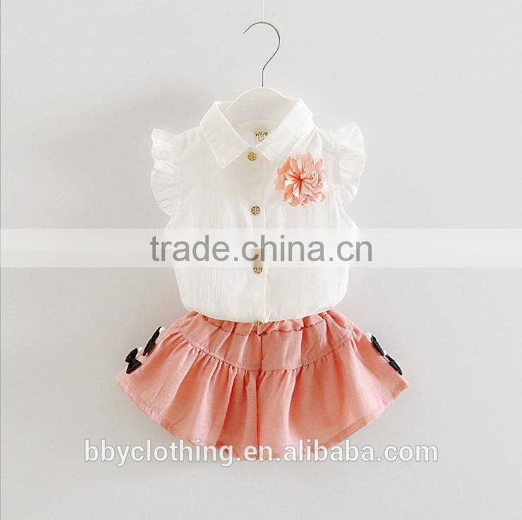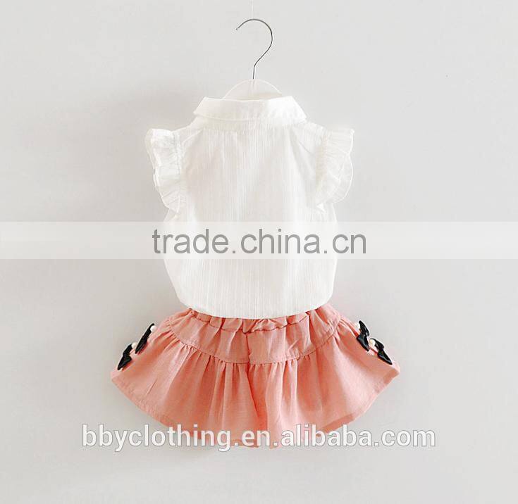 2017 Wholesale Baby girls clothes summer clothing set white sleeveless shirt and short