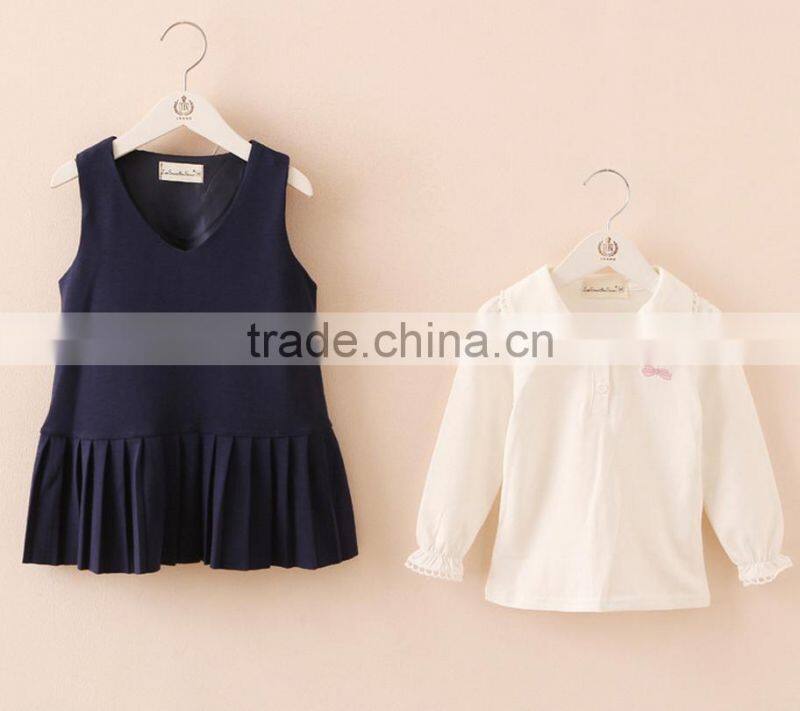 Wholesale baby girl boutique clothing sets white shirts and dress 2 piece