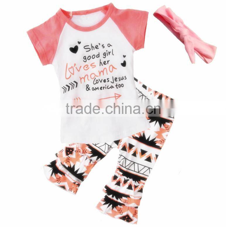 BBY6021 Fashion Clothing 2017 Child Girls Flower Tops and Shorts Two Piece Sets