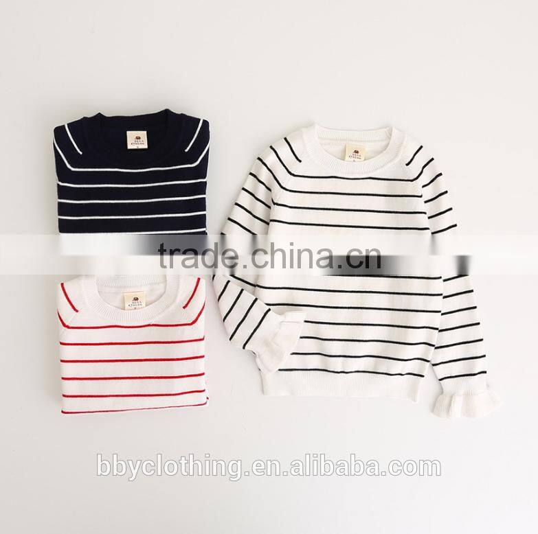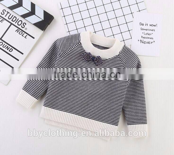 Wholesale Chinese Winter Clothes Kids Striped Cropped Pullover Sweaters With Bowknot