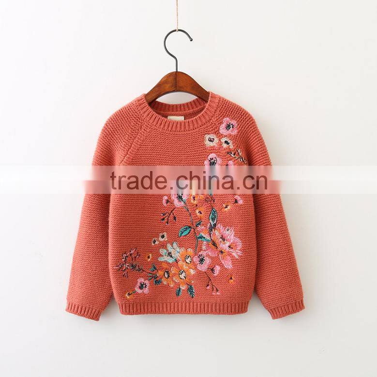 Fashion Kid Girls Rose Embroidery Short Kintted Sweater for Autumn
