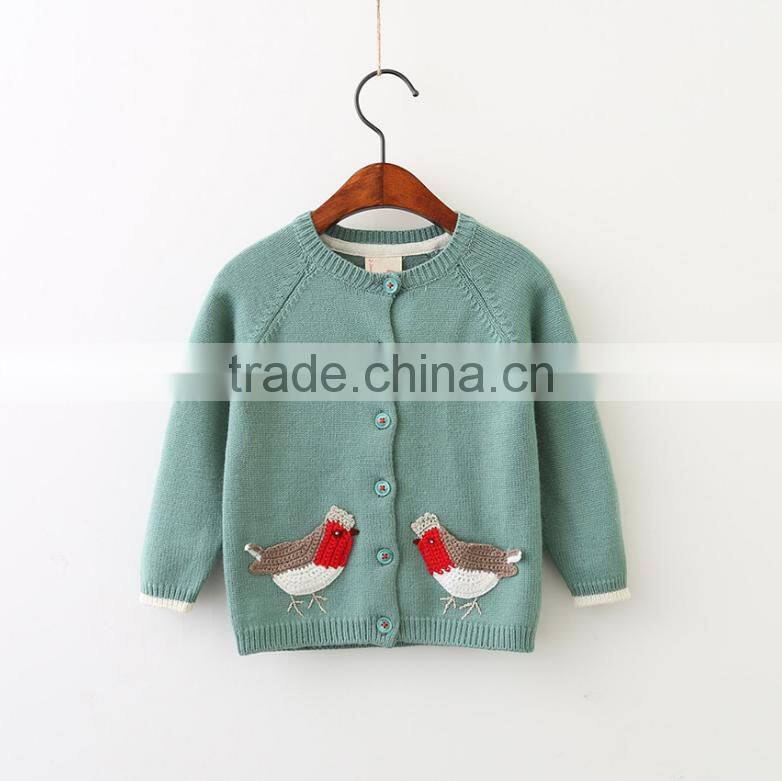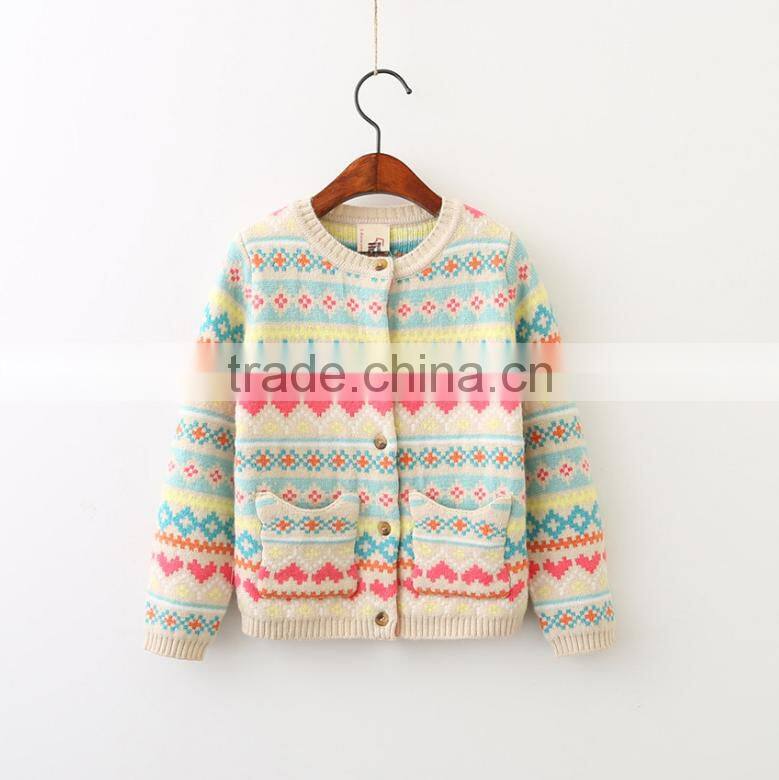 Cheap Price Kids Wear Cardigan Girls Orange Color Knitted Sweaters With Hook