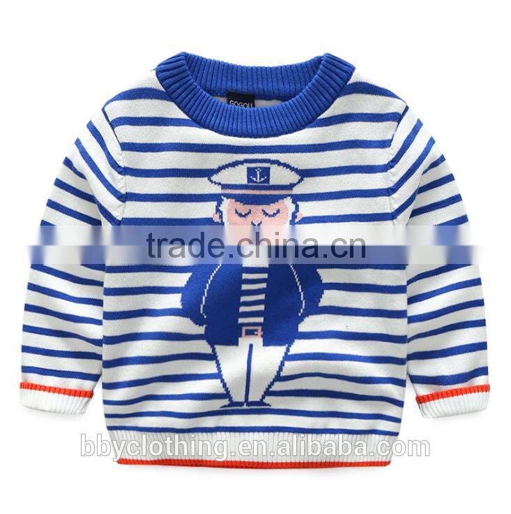 Wholesale Boys Blue White Striped Knitted Sweaters With Jacquard Patterns