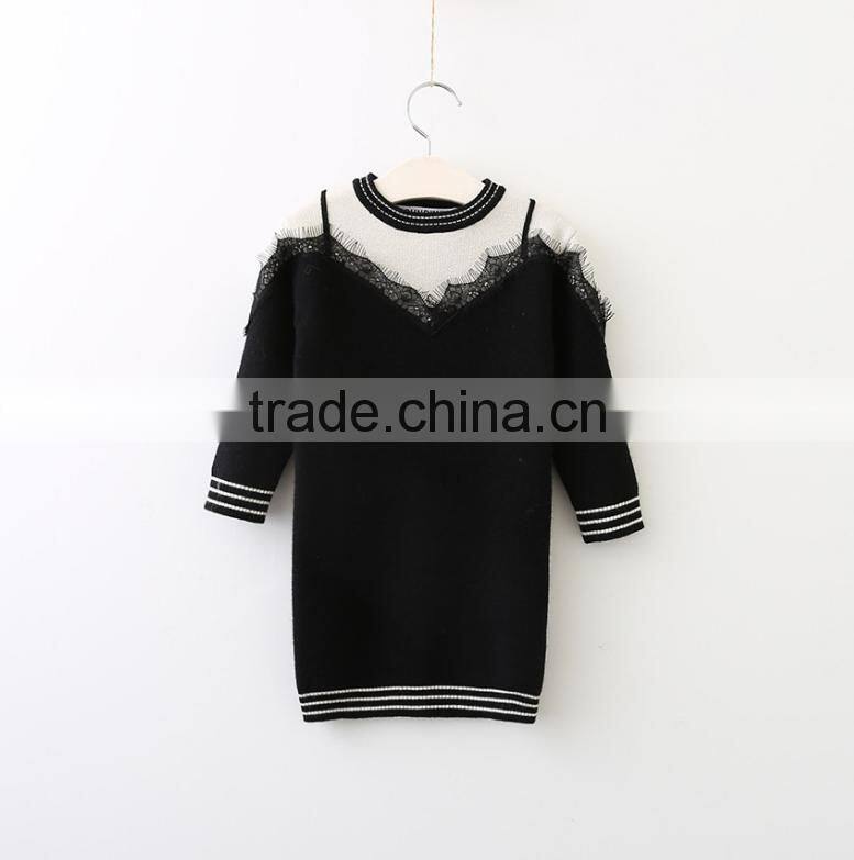 High Quality Child Elegant White Black Patchwork Long Sweater With Lace