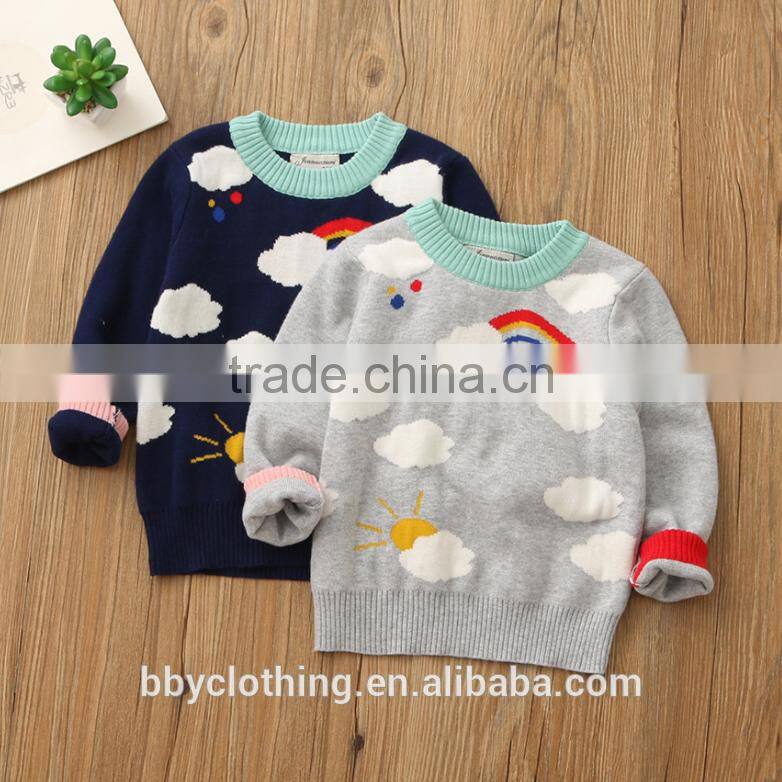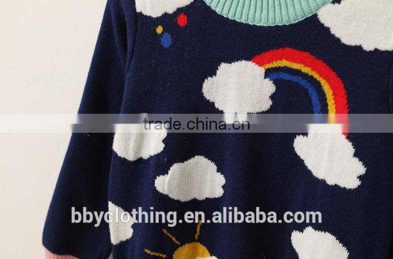 Warm girls rainbow and cloud pattern patchwork sweater pullover with cheap price