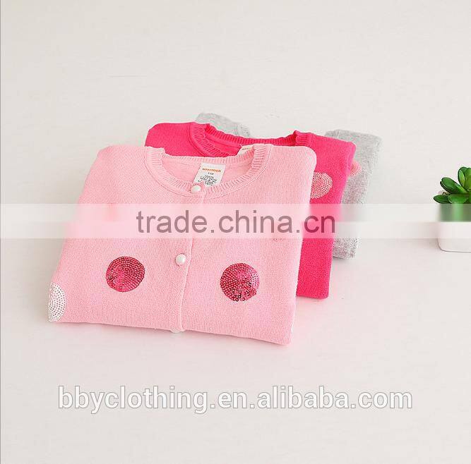 New Hot High Quality Elastic Unlined Children Cardigan With Sequin Infront