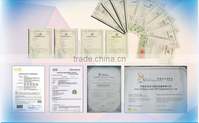 Jinan JinQiang Laser CNC Equipment Co.,Ltd is located in Jinan High & New Technology Industrial Development Zone. We are committed ourselves to developing, producing and selling laser equipment. Our company supplies JQ series of laser engraving and laser cutting equipment, laser engravers and laser cutters. They are used in many fields. With high quality products and top after-sales service, we have won trust and support of customers from all over the world. Our company is guided by the market-oriented concept as well as masterful technique, and regards "good service and customers' benefits" our rules. With technical development, and many years of research, our products are improved day by day. Our philosophy is "Golden Quality, The Best Technique and Good Faith". We are trying to be a well-known company at home and abroad with the perfect and considerate after-sales service system. We welcome customers from all over the world to cooperate with us. Please feel free to contact us for further information. Selecting JQ laser the world will become yours !
