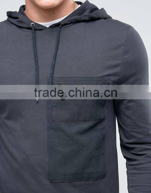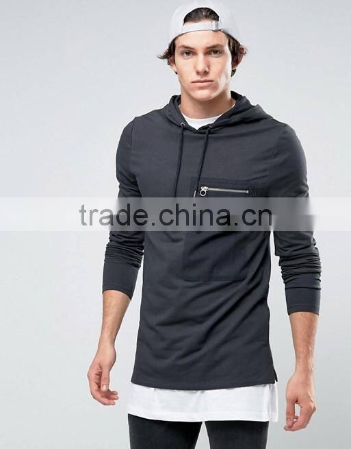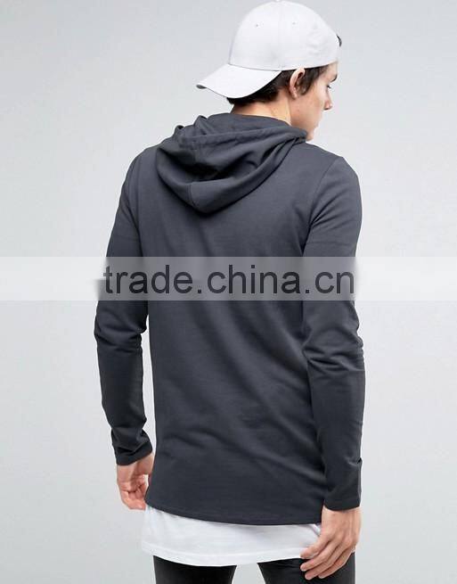 2016 Hot Sale Custom With Hood Longline Side Splits Brown Men's Lightweight 100% Organic Cotton Casual Pullover Blank Hoodies