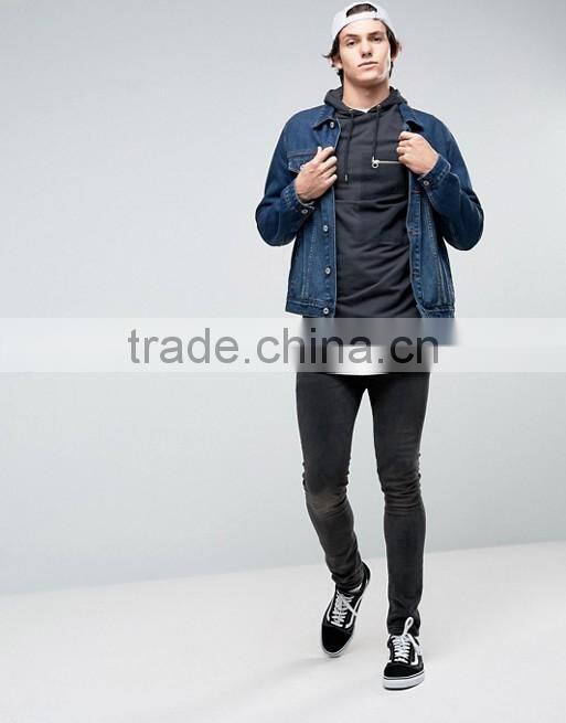 Hot Sale Custom With Hood Longline Dark Grey Men's Lightweight 100% Cotton Casual Zipper Up Blank Hoodies