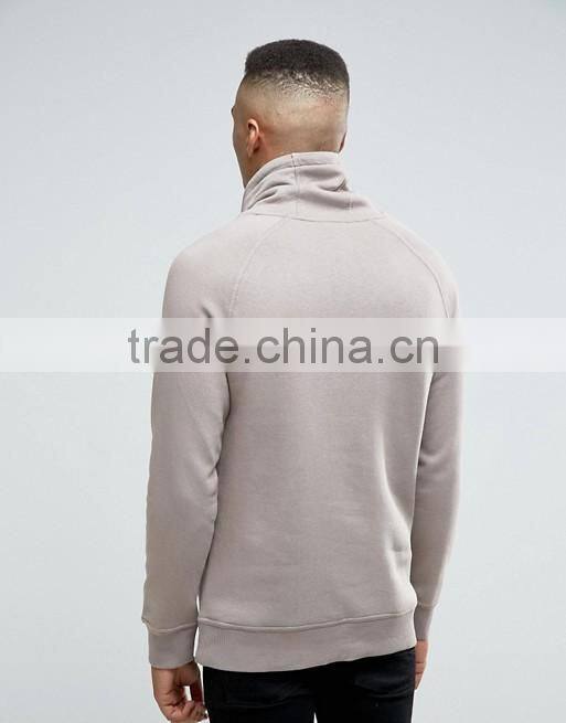 Custom Ribbed Collar Press Stud Opening Side Pocket Black Men's 100% Cotton Casual Plain Design Jumper Sweatshirt