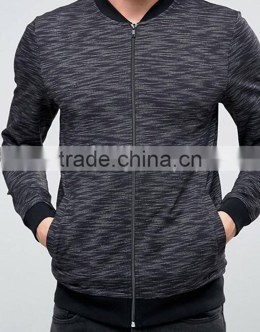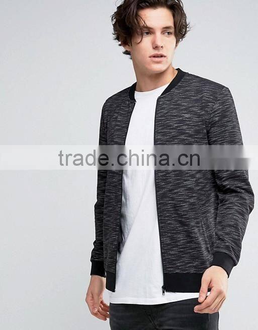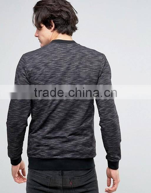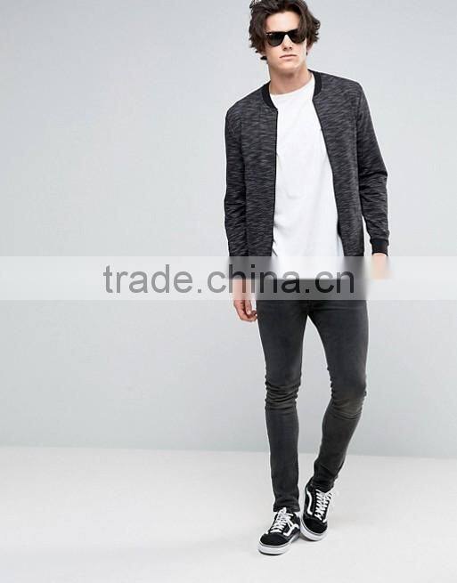 Custom Baseball Collar Side Pockets Back Men's Slub Knit Cotton Polyester Elastane Casual Skinny Tight Zip Jumper Sweatshirt