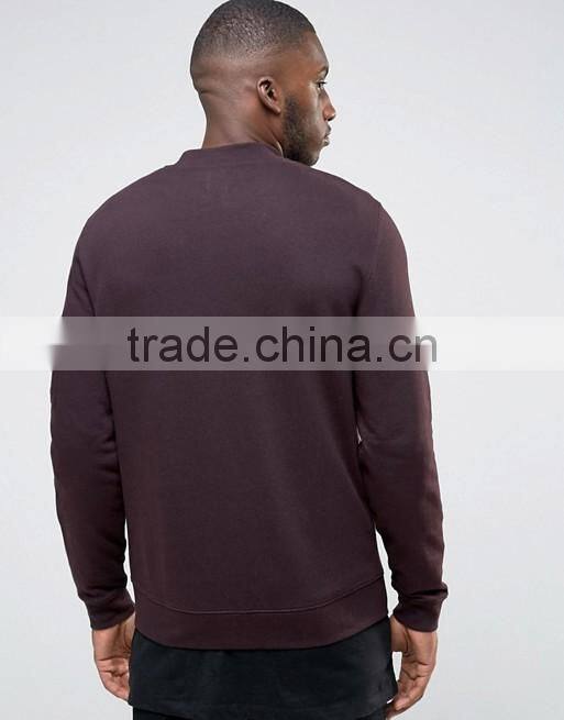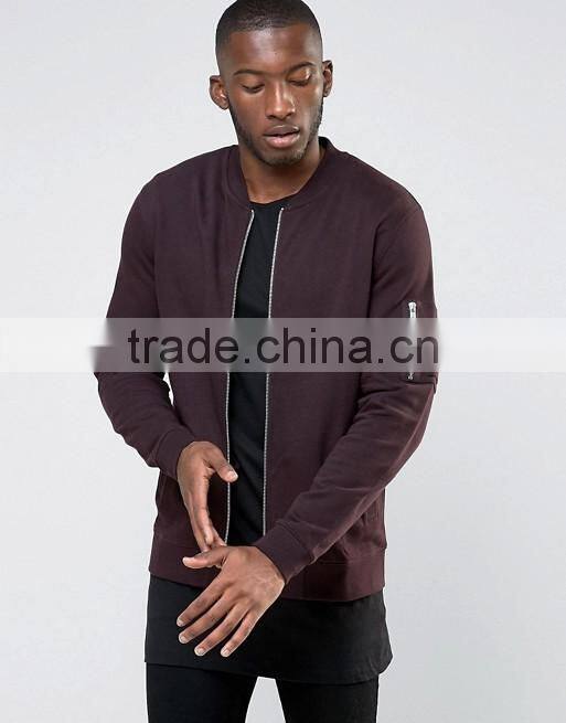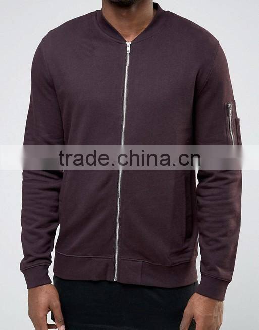 High Quality Custom Baseball Collar Functional Pockets Purple Men's 100% Cotton Casual Slim Zip Closure Jumper Jacket Sweatshirt