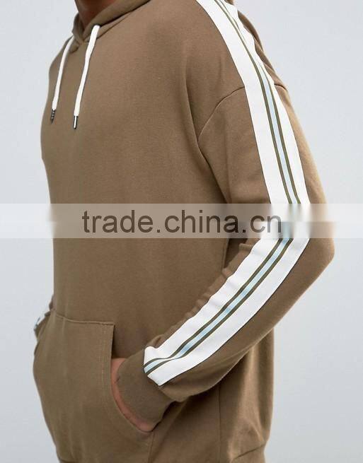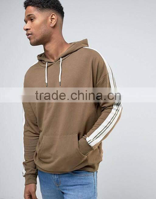 2016 Hot Sale Custom With Hood Longline Side Splits Brown Men's Lightweight 100% Organic Cotton Casual Pullover Blank Hoodies