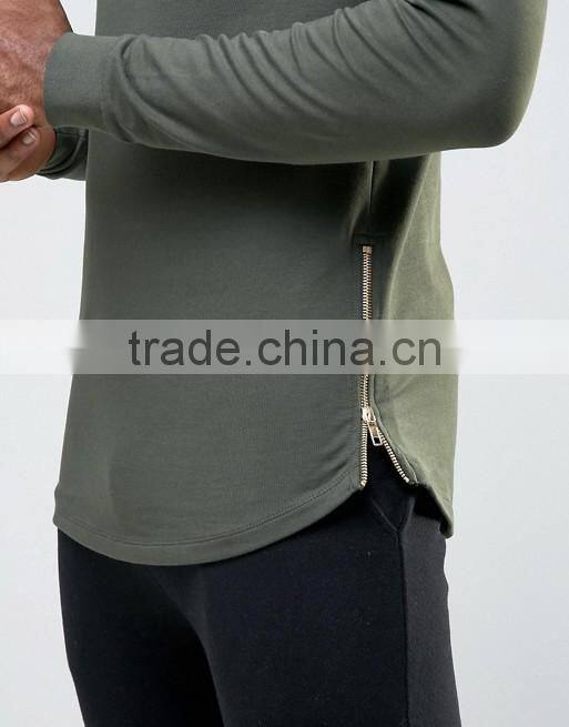 Guangzhou Factory Custom Crew Neck Without Hood Side Zip Longline Grey Green Men's Cotton Spandex Casual Plain Sweatshirt
