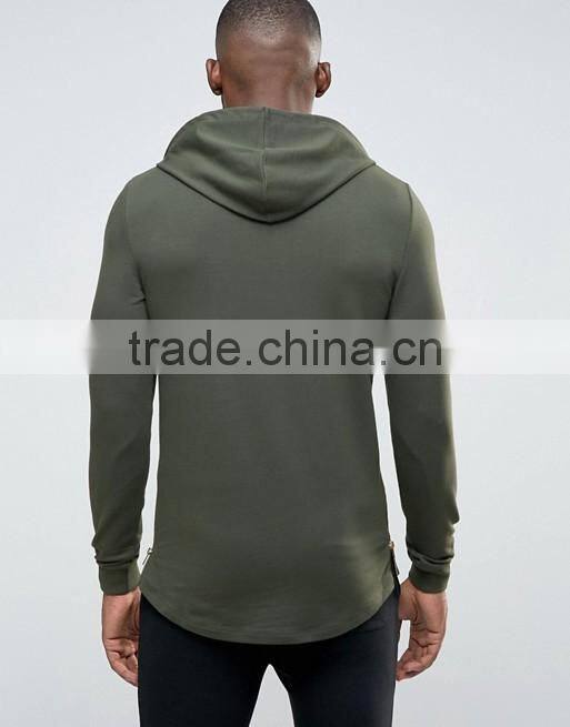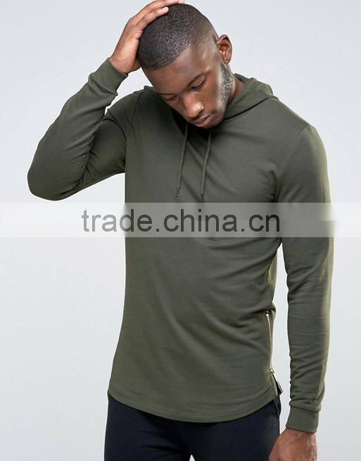 2016 Hot Sale Custom With Hood Longline Side Splits Brown Men's Lightweight 100% Organic Cotton Casual Pullover Blank Hoodies
