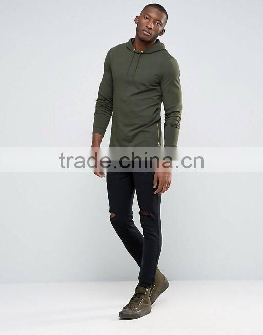 Custom With Hood Side Zip Longline Over The Head Style Green Men's Lightweight Spandex/Cotton Casual Slim Pullover Hoodies