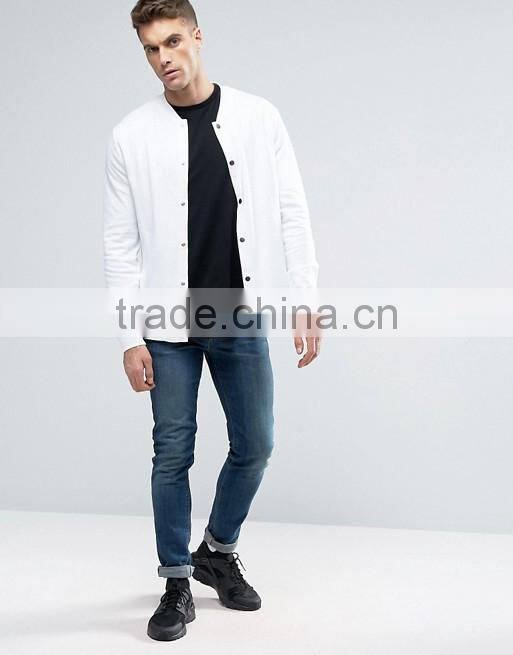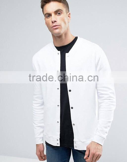 Custom Baseball Collar Press Stud Placket Side Pockets White Men's 100% Cotton Casual Plain Design Button Openning Sweatshirt