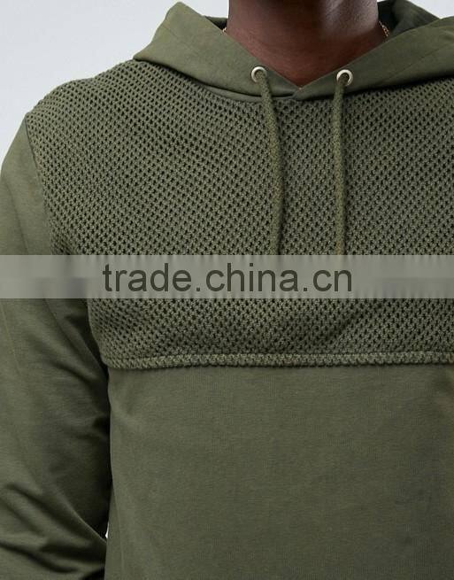 Custom Dropped Shoulders Mesh Panel With Hood Green Men's Cotton Spandex Casual Oversized Plain Design Pullover Hoodies