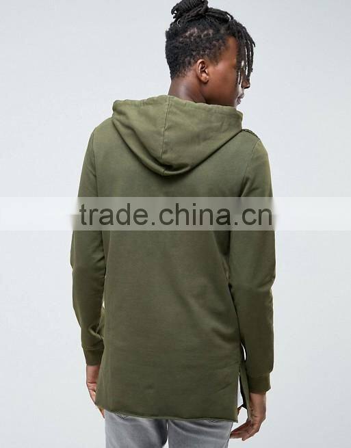 2016 Hot Sale Custom With Hood Longline Side Splits Brown Men's Lightweight 100% Organic Cotton Casual Pullover Blank Hoodies