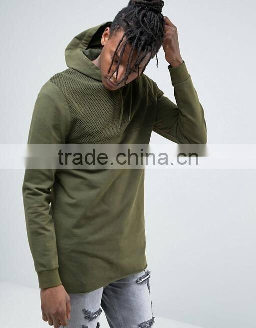 Home > Products > hoodie > Custom Dropped Shoulders Mesh Panel With Hood Green Men's Cotton Spandex Casual Oversized Plain Design Pullover Hoodies